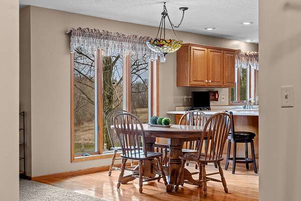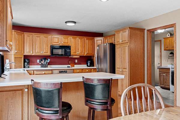 If you have been searching for that perfect balance of rural privacy and small town convenience, this is it. Located just five minutes outside the Village of Ellsworth, this property offers a peaceful country setting tucked away on a heavily wooded lot. The home is designed for those who love to host, featuring a massive deck perfect for summer gatherings and an additional raised deck built specifically for an above ground pool. When the weather cools down, you can move the party inside to the warmth of the wood burning fireplace. Practicality is not overlooked either; the attached two car garage is fully insulated, and the walk out basement opens directly onto a private concrete patio, providing a shaded spot to take in the views of the country. This is not just a house; it is a blank slate ready for your specific vision.