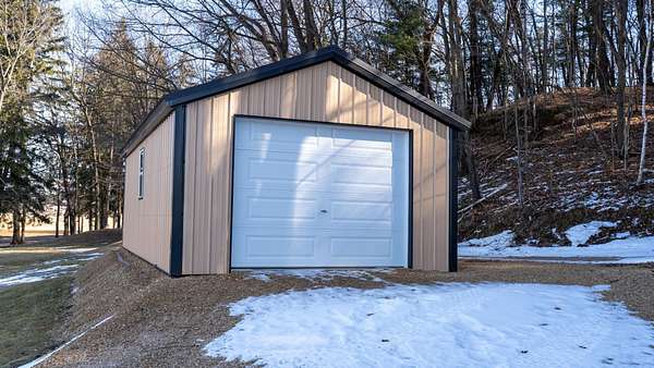 Located in Wisconsin's highly sought-after Driftless Region, this 60+/-ac recreational property offers a rare opportunity for hunting, relaxation, and year-round enjoyment. The property features a 14x40 Amish-built log cabin constructed in 2022, designed for comfort and durability. The cabin includes 1 bedroom, 1 full bath forced air heating, wall mounted air conditioning, fiber optic internet availability, and a steel roof. A covered front porch provides a great space to relax and take in the peaceful surroundings. Septic, electric, well new in 22. Two additional outbuildings offer extra storage for equipment and gear. The land is well-suited for deer and turkey hunting, with two established food plots and two permanent blinds included in the sale. A maintained trail system runs throughout the property, allowing easy access to multiple stand locations. The layout offers access points on both the east, providing flexibility for hunting and land management. This wont last long!!