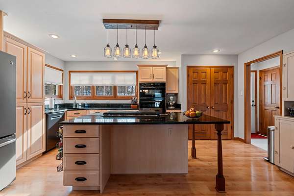 Immaculate home on over 2 acres surrounded by mature trees and beautiful perennials. This quality-built 3 bedroom, 4 bath property offers three levels of living space. The main floor features an impressive kitchen, spacious living and dining areas, a half bath, and a convenient mudroom. Upstairs you will find three bedrooms including a large primary suite and an additional full bath. A bonus room above the garage provides flexible space for future needs. The lower level includes a laundry room and a comfortable family room with office area. Enjoy two gas fireplaces and many thoughtful details throughout. An additional garage with its own driveway and electrical service & water adds excellent storage or workshop potential. Back on the market due to job relocation.