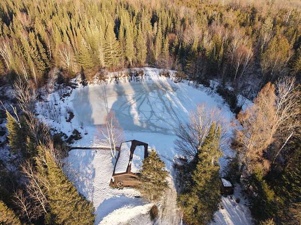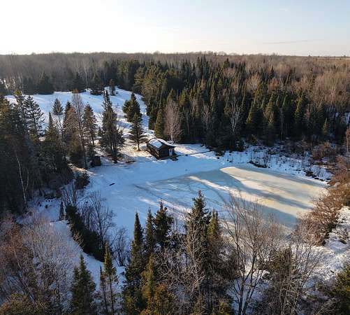 40-acre property located on a quiet dead-end road near Fifield, WI, offering a private Northwoods setting with a cozy cabin positioned well off the road overlooking a pond. The cabin is heated by LP and makes a great hunting camp or guest cabin if you choose to build a future home on the property. The rolling terrain provides an excellent building site with great views of the surrounding land. The property offers diverse habitat with rolling meadows dotted with pines, areas of hardwoods mixed with pine, heavy cover, and pockets of cedar creating ideal conditions for deer, bear, and grouse. The mix of cover and openings provides natural travel routes and bedding areas that hold wildlife. Direct access to the snowmobile trail adds year-round recreation, while the quiet location keeps the setting peaceful and secluded. A solid combination of hunting land, cabin, recreational property, and a stunning future building site in a desirable area near Fifield Wisconsin.