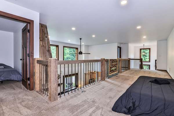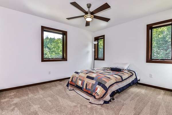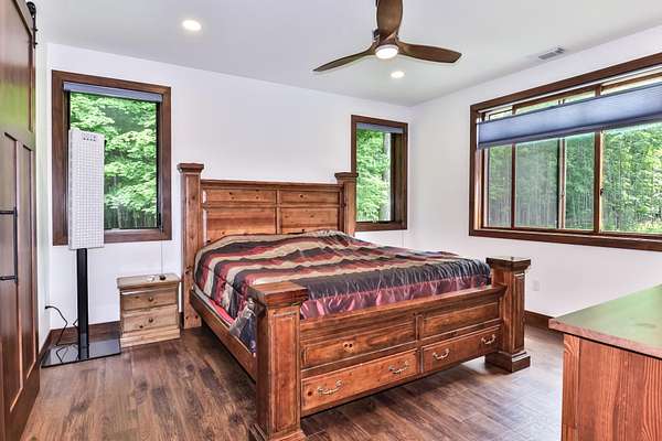 Beautiful, maintenance free, home with a huge garage! This home is located, on 5 heavily wooded acres, on a dead end road, in the Pike Lake area, offering excellent privacy. The home features; a metal roof, and exterior, 3 bedrooms, 21/2 baths. a primary bedroom suite, 8' doors, granite counter tops, hickory kitchen cabinets, a large pantry area, a very unique, barn board, wood burning fireplace, both forced air, and hydronic heat, and a 2000 sq. ft. (40x50) attached, heated garage. Besides the "standard" insulation package, the entire structure was wrapped with 2" styro-foam under the metal exterior. Just a short distance from the 2000 acre Pike Lake Chain, know for excellent fishing and boating. This area is surrounded by thousands of acres of Chequamegon/Nicolet National forest. Hunting, hiking, exploring, and all that nature has to offer is waiting for you. Direct access from your door, to some of the best ATV/UTV, snowmobile trails in the Midwest.