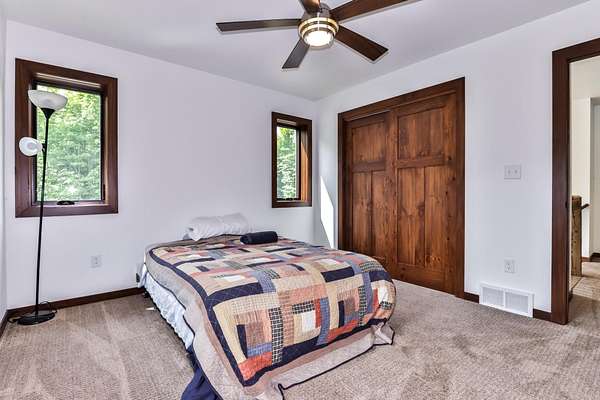 - Bath In Primary Bedroom, Cathedral Ceilings, Ceiling Fans, High Ceilings, Main Level Primary, Pantry, Vaulted Ceilings, Walk In Closets