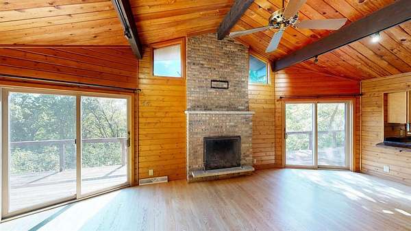 Est $2,362/moRare opportunity to own this secluded home in the heart of the Kettle Moraine. Privacy surrounds you and you can see for miles from this hilltop retreat. Rustic home with cathedral ceiling, woodburning fireplace, some hardwood floors and walls of windows to view nature from. A huge deck is perfect for relaxing or entertaining. It's rare to visit this property and not see deer and other wildlife. This home is part of the Scattered Oaks HOA which includes a private beach for your use and boat slips as available. Check this one out!