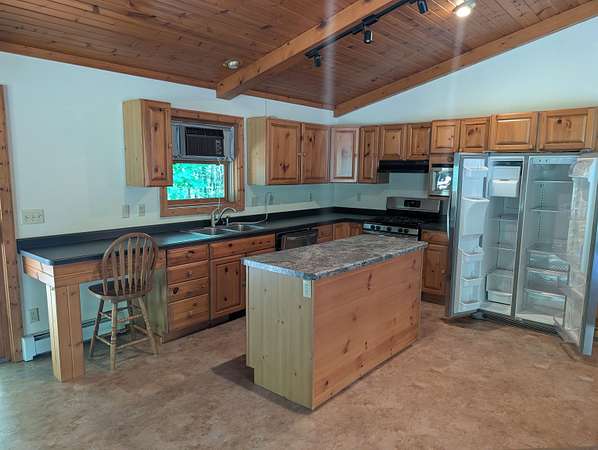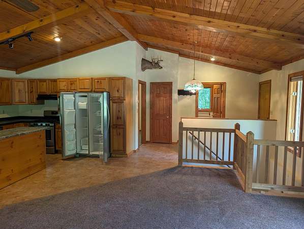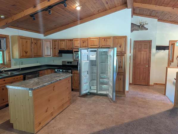 Est $2,142/moCustom built one owner home/cabin in the woods. Private location, over 14 acres and boarders Lincoln County land to the north. Cabin features 2 bedrooms plus a bonus room. Vaulted ceilings, open concep, walk out lower level, huge deck. All appliances included. 2 car attached garage and 3 car detached. Also included is an old original log cabin. The owner moved it here years ago. Would make a great guest cabin or office, or he or she shed. Lots of possibilites. There are trails throughout the property. Excellent hunting property or private retreat. Close to snowmobile and utv trails. Conventional septic, propane tank is owned and included with the sale