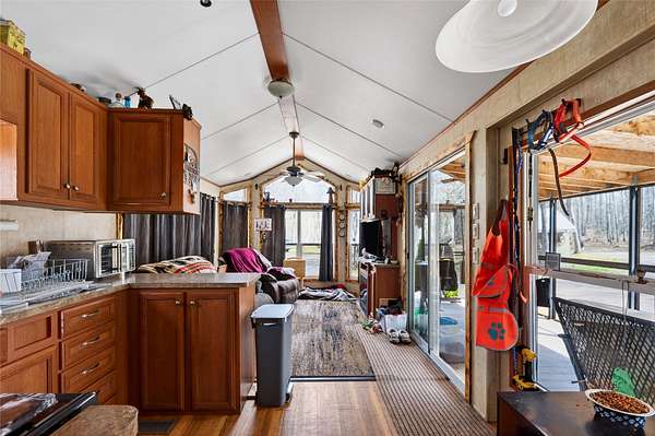 Escape to the peace and privacy of this beautiful 2.11-acre property just moments from McLain Lake. Tucked away on a quiet, lightly traveled road, this property offers the perfect blend of seclusion and convenience. The property features a well-maintained 2011 Breckenridge manufactured home with 420 sq ft of efficient living space, complemented by a spacious 3-season covered porch-ideal for relaxing and enjoying the surrounding nature. A separate heated laundry room/shed adds functionality and comfort. Additional highlights include a large storage shed, a charming gazebo perfect for entertaining or unwinding, and a camper that comfortably sleeps up to six guests-making this an excellent setup for hosting family and friends. A circular driveway provides easy access and plenty of parking. Whether you're looking for a weekend retreat, hunting basecamp, or a peaceful getaway near the water, this property checks all the boxes