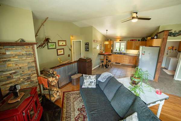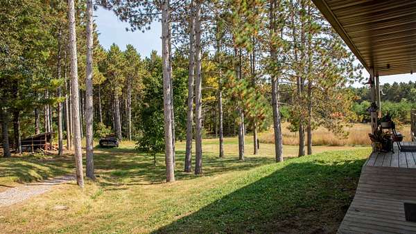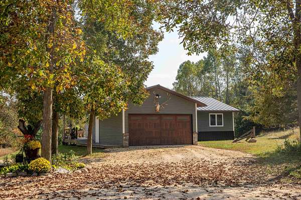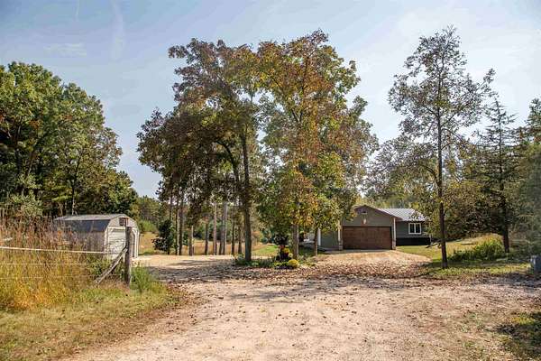 Hunters & wildlife enthusiasts take note! Rare 80-acre property is the ultimate blend of privacy, nature and convenience just ten minutes from I-39. 2br home finished in appealing neutrals has open concept kitchen/living/dining area and wood stove to help keep the chill off. Two bedrooms, main level laundry, partially finished basement with rec room and storage area. Well-planned covered porch and wrap-around deck allow enjoyment of surroundings. Steel roof and easy-care siding lend to the low maintenance of this home. Attached garage & storage shed for vehicles, lawn tools & other toys. Beautiful trails throughout and 20ac of fenced-in pasture. Great care given to prairie wood land management. Known for trophy bucks, the acreage offers plenty of space for the whole group to hunt.