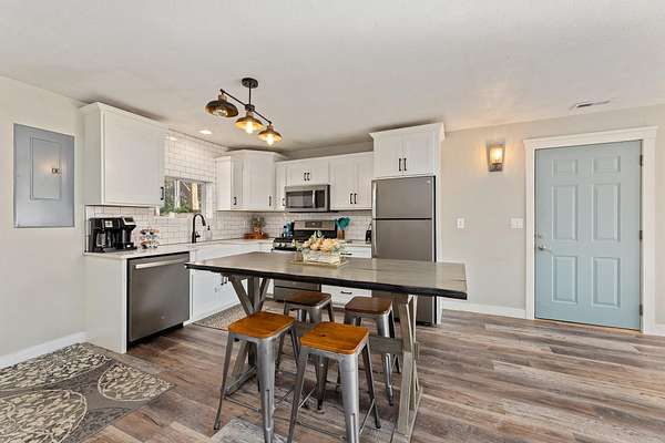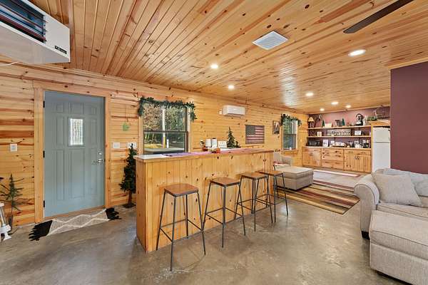 Charming 2-bedroom, 1-bath ranch home on 5 scenic acres offers rustic yet updated appeal & comes fully furnished. Located just a minute's drive from Lake Arbutus, this updated modern farmhouse boasts an open-concept kitchen & dining area, and a cozy natural fireplace in the living room. Converted from a two-car garage, an extra living space with a dry bar provides a perfect spot for family gatherings & entertaining. Nature enthusiasts will appreciate the property's proximity to public land, nearby parks, beaches & ATV/UTV trails. Enjoy outdoor living year-round with a spacious patio ideal for summer BBQs & a hot tub to relax on chilly Wisconsin evenings. Whether you're seeking a turnkey investment or peaceful country retreat, this home delivers comfort & charm in every season.