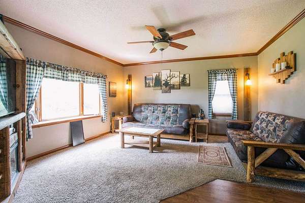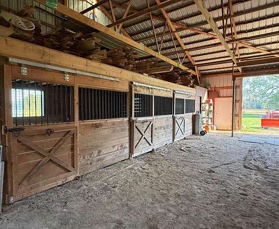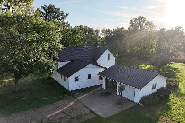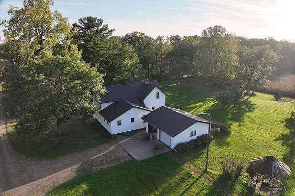 Charming 4-bedroom farmhouse tucked away on a peaceful dead-end road, offering privacy and wide-open country living. This well-kept home provides plenty of space for family and guests, while the 19.7 acres of land (mixture of ag land and wooded) and outbuildings make it a true rural retreat. A highlight of the property is the expansive 50? x 80? pole shed, thoughtfully designed with a kitchenette and lodge-style gathering area?perfect for entertaining. The shed also features horse stalls and a dedicated tack room, making it ideal for equestrian use. Two cozy bunkhouses add plenty of room for family, friends, or hunting buddies. Whether you?re looking for a hobby farm, a place for your horses, or a versatile country getaway, this property has it all.
