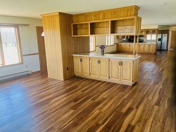 This ranch style custom built all brick home was built with loving care. Attention to detail and the best quality. Lots of room and generous size bedrooms with your own bathroom. Enjoy the peaceful views with 5.5 acres. Magnificent sunsets and sunrises. Stainless high quality new appliances in kitchen, with lots of cupboard space and plenty of storage throughout the home. All rooms freshly painted and new LVT throughout the 2660 sq ft on the main floor and in the finished basement. Main floor laundry with sink and lots of closet space. Finished lower level with refrigerator. Garage is attached with 2 oversized stalls with opener, freshly painted. Central air for warm Wi summers and a large 14x16 sundeck with beautiful views. Newer steel roof. Beautiful property!