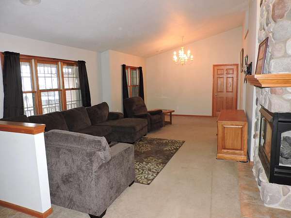 - Central Vacuum, Free Standing Stove, Gas Fireplace, Kitchen Island, Vaulted Ceiling(s), Walk-In Closet(s)
