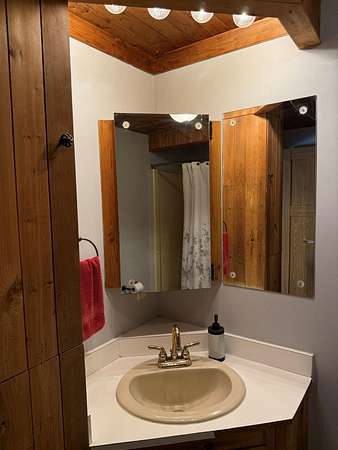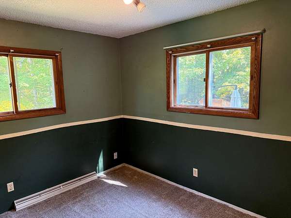 Here is a well maintained two bedroom home with a septic system sized for a three bedroom residence. Newer metal roof on home and the garage. The property has frontage on a smaller no named lake. There is a pier so a nice private area for canoeing or kayaking. The wooded lot offers a lot of privacy and also a lot of wildlife. The home is a tri-level, year round residence with only a few steps to both the upper bedroom area and to the lower family and bonus rooms. Beautiful maple wood flooring in the dining area, a smaller deck off of the primary bedroom and another deck off of the kitchen area through the patio doors. The perfect spot for grillin and chillin. The detached garage is plenty big for three vehicles and more. An attached lean-to for additional storage. A shed for yard tools and a roofed firewood area. Almost a stones throw away from North and South Neva Lakes which total approx 51 acres of fishing waters. Another bonus, Hundreds of Acres of County Land only a mile away.