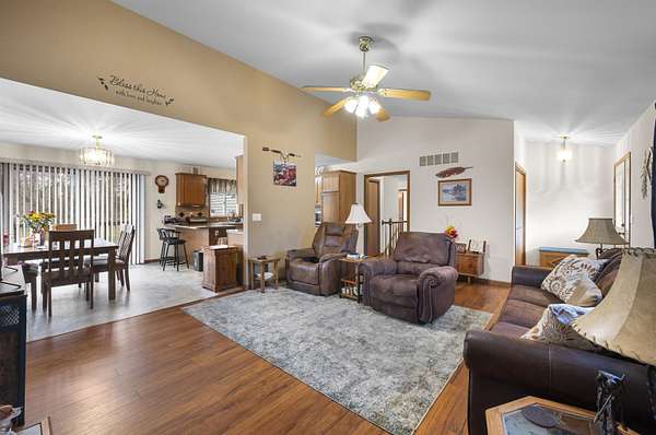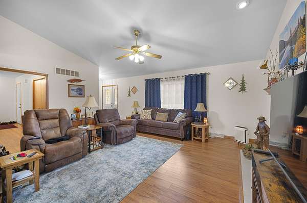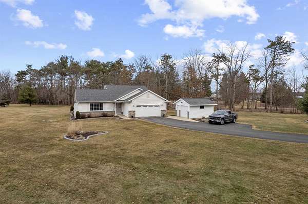 From County Hwy E, east on Golf Course Rd, east of Cottage Rd, north on Pine St, Pine St turns into North Dr, Home on north side of the road