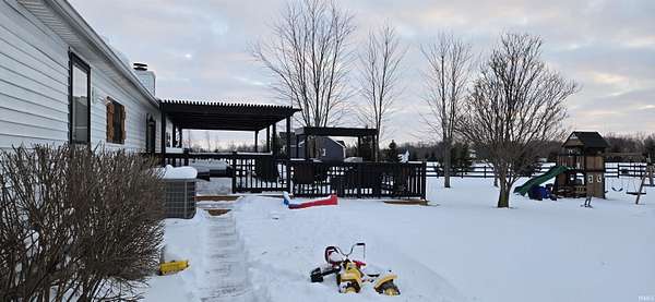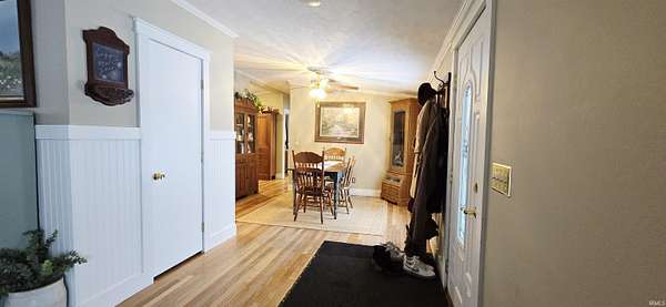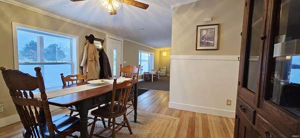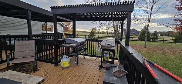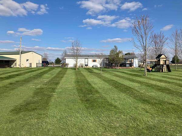 This recently renovated 3 bedroom and 2 full bath ranch on a beautiful 3 acre setting just south of Wabash. The home features a spacious open floor plan, a detached 3 car garage with oversized 10ft door. The property includes a pasture and additional outbuilding for animals, hobbies or storage. Country charm with modern updates. Master bedroom with large walk-in closet and newly renovated en suite bath with double pedestal sinks and corner shower. Large white cabinet in bathroom stays. Large open living room (24x18) with a dining room and large kitchen with island. Generac generator stays. Includes all appliances, water softener- owned. Home has natural gas. NEW: HVAC 2025, Flooring: Solid Oak Hardwood & Carpet 2024, Master Bath 2025. Roof 2022. Garage/pole barn has a concrete floor with 220amp service with 3 phase hookup