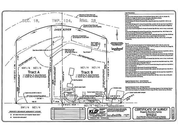 18 -124 -028 18-124-28 1.18A P/O N2NE4 BEG SE COR NW4NE4-SE ALG W LN SE4NE4 458.84' TO NLY ROW OLD HWY 52-SELY ALG ROW 205.04'-N85D E ALG ROW 72.26'-NE 464.81' TO N LN SE4NE4 & POB-CONT NE 20'-N89D W 66.90'-NW PARALLEL WITH E LN NW4NE4 284' TO THREAD OF SAUK RIVER-WLY ALG THREAD TO INT WITH LN 49.50' E OF E LN NW4NE4-SLY ALG W LN OF E 49.50' TO S LN NW4NE4-S89D E ALG S LN 49.50' TO POB