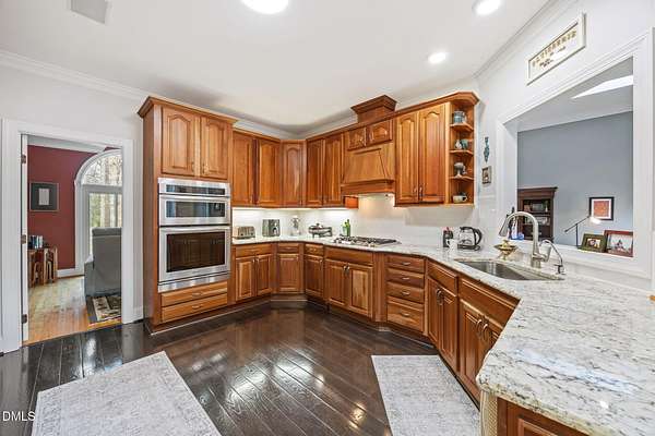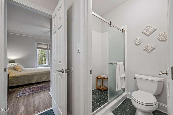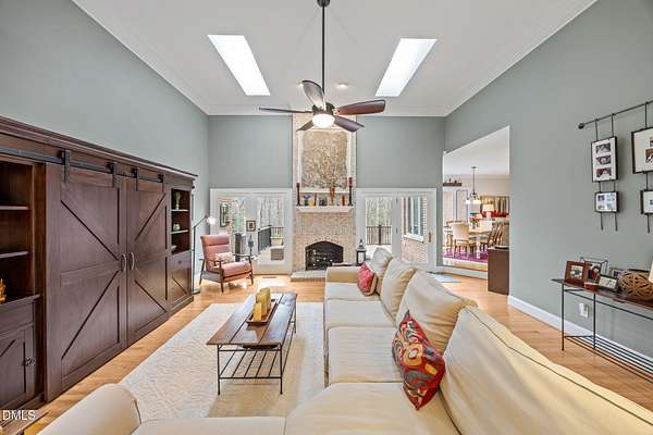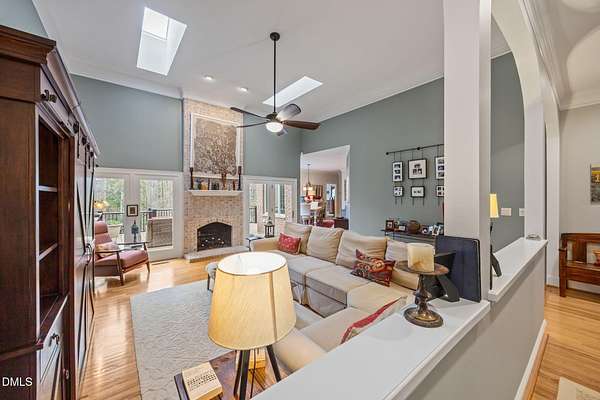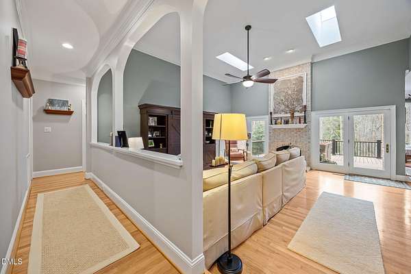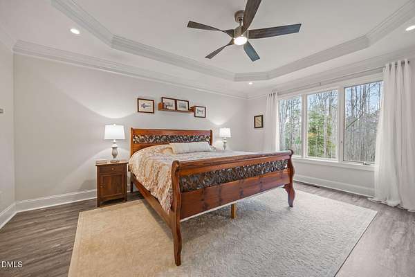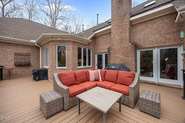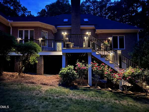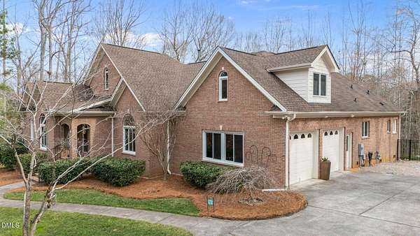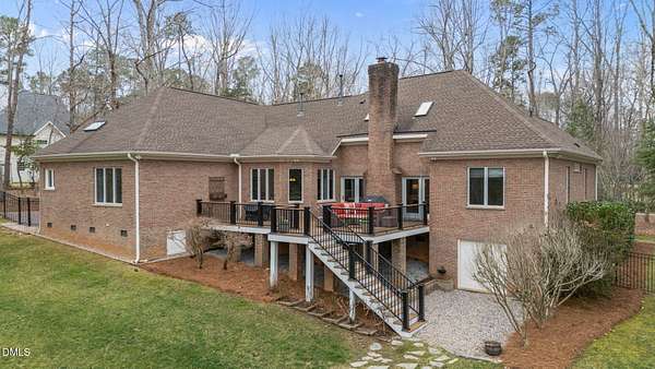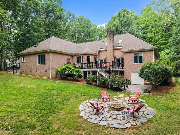Unique opportunity to own a beautiful brick custom home on 2.23 acres, only a short walk from the backyard to Falls Lake and the Mountains-To-Sea Trail! Bring your kayaks and canoes, enjoy the hiking trails, or take your boat to one of the nearby local ramps. This home is slated for either 4 bedrooms or 3 bedrooms + large bonus room with full bath. First floor master has a large shower, garden tub, and his/her walk-in closets. Home has 3 full baths, 1 half bath. Fireplace in high ceiling great room with skylights allowing plentiful natural light. Large laundry room. Vast kitchen opening to scenic view in dining area. Spacious two car garage with Wheelhouse generator. Walk-in crawl space for landscape and garden storage or use as a wired workshop. Incredible attic storage area can be renovated into even more living space and has a temperature-controlled wine room. Main level HVAC installed in 2022. Brand new second floor HVAC 2026. New roof in 2021. Huge Signature Trex deck with lighting package overlooking the forest built in 2024. No HOA. Privacy surrounded by abundant nature yet also in close proximity to north Raleigh shopping and dining make this a rare find. Minutes to I-540 and Harris Teeter. Easy commute to RDU, downtown Raleigh, Durham, and Wake Forest. Opportunities to create and expand are endless. Don't miss your chance to own this truly exceptional property!