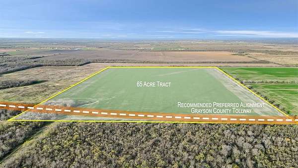 65 Acres on the preferred projected Grayson County Tollway, a planned expansion of the Dallas North Tollway. This tract is right in the heart of North Texas' expansive growth offering great investment potential for multiple types of development, including commercial, residential or industrial uses. Only 20 miles to Texas Instruments, GlobalWafers, Coherent, and other industries in and around Sherman's Progress Park, the area is a multi-billion dollar hub for semiconductor technology. Temporary road easement will be offered until planned Grayson County minor arterials are complete, or a dedicated 60 ft. road may be purchased at $114,000 per acre linking Wall Street Road to the property. This tract is located in the Gunter, TX ETJ. The City of Gunter and Grayson County should be consulted for all planned use.