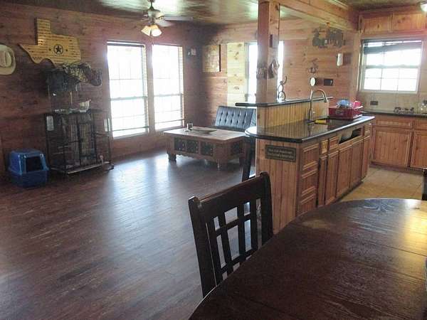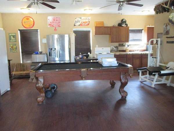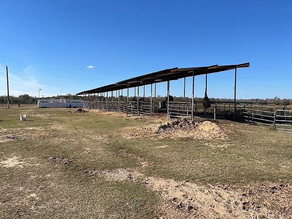 Riverfront Property available in Wallis Tx. This horse ranch has 41.26 acres with frontage on the San Benard River. Property is cleared up front and wooded at the back with Pecan and Oaks trees. There is a 2/2 built in 1940 that was moved onto the property. Solar panels were installed. Other updates to the main home are electrical, plumbing and roof when it was moved to the property. There is an inground swimming pool and metal building with living quarters. Living quarters is 1/1 +office, full kitchen open the living area. Metal building also features a 2 car garage with 3 roll up doors and an open area for other outdoor implements. There is a horse barn with 7 stalls and tack room, round arena, working pens and 14 outdoor stalls and a barn with stalls for smaller animals such as goats and chickens and a rodeo arena. Property is fenced and cross fenced.