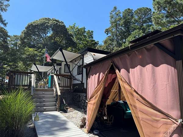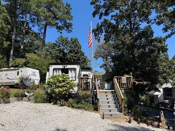 Est $717/moNice high and dry lot with peek a boo views of the water. Nice elevated camper and deck. Shed, septic, and grilling area. This turn key properties includes just about everything other than a few personal items. Built in outdoor firepit, washer & dryer in shed. Generator on site that has never been used. Water filter system. New heater fan motor. Lot of room to park cars, boats, and carts. Just down the street from the crabbing pier. Also includes access to pool, dock, fishing pier, boat ramps, boat slips, clubhouse, pickleball court, playground, pavilion, and more.