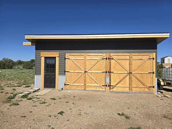 Discover an idyllic 4+ acre escape in the enchanting Rio Cucharas subdivision, Walsenburg, CO. This parcel offers breathtaking mountain views and is a stargazer's dream. Equipped with electrical service and on-grid solar panels, it promotes an energy-efficient lifestyle. Charge your EVs or RV seamlessly with three 220-volt outlets. A sustainable rain catch system with a 1,500-gallon cistern complements the 300 sq ft custom cedar workshop, ready for in-floor heating installation. Plans for a 2000 sq ft, 3-bedroom, 2-bath house are included. Being minutes from Lathrop State Park and Spanish Peaks Regional Health Center enhance the living experience, enriching this community with leisure and care amenities.