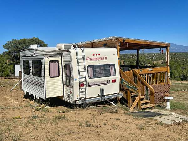 Est $511/moPerfect getaway! Over 6 acres of fun and privacy. The 1994 Hitchhiker camper is in great condition, with newer flooring, and is move in ready. The large deck has a newer roof and is decorated with solar lights and patio furniture. This property is diverse with flat areas, many trees, moss rock, and partial fencing. Just a short hike to the top of the hill to get a bird's eye view. Only 2 1/2 hours from Denver, 30 minutes to Cuchara Mountain Park, and 10 minutes away from Lathrop State Park. If you are looking for a Southern Colorado get away without set up, this is the spot for you. Furnishings included. NO HOA or covenants. Call today!