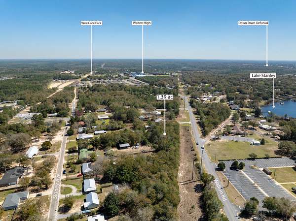 Prime 1.385-Acre Homesite in DeFuniak Springs - Zoned R-1 Single-Family Residential Seize this exceptional opportunity to own 1.385 acres of prime land on Walton Road, conveniently located less than a mile from Walton High School in the charming town of DeFuniak Springs, FL. This residentially zoned (R-1) parcel is prepped with water and sewer installed (tap fee due), making it a ready-to-build site for your dream home. Located in Flood Zone X with no wetlands, as per Walton County GIS maps, this property offers peace of mind and ease of development in a serene yet highly accessible location-just minutes from shopping, dining, medical facilities, and schools, and less than 50 minutes from the stunning beaches of 30A. Why You'll Love This Location: DeFuniak Springs Highlights: Lake DeFuniak - One of only two nearly perfect circular spring-fed lakes in the world (40 acres), with a scenic walking trail, dock, and seasonal public swimming and fishing. Historic Downtown District - Less than one mile away, featuring the famous Chautauqua Building, charming shops, and community events. Annual Christmas Lights Festival - Showcasing over 10 million lights around the Lake Yard, attracting visitors from across the region. Outdoor & Recreation: King's Lake - A well-stocked 580-acre reservoir just 6.3 miles north, perfect for fishing enthusiasts (record bass catch: 17.25 lbs!). Gulf of Mexico's White Sand Beaches - Access pristine beaches within 35 minutes to an hour, including Henderson Beach, Miramar Beach, Santa Rosa Beach, and more. Crab Island in Destin - A world-famous boating destination on the Emerald Coast. Emerald Coast Zoo & Chautauqua Winery - Local attractions perfect for family outings. Endless Outdoor Adventures: Multiple hiking trails including Florida Trail (Eglin & Nokuse), Lakewood Park, and Lafayette Creek. Natural Springs & Parks - Explore Vortex Springs, Ponce De Leon Springs, Morrison Springs, and Florida Caverns in Marianna. Key Features: *1.385 acres - Zoned R-1 for single-family residential * Water & sewer installed (tap fee due) *Flood Zone X - No wetlands (per Walton County GIS maps) * Minutes to downtown DeFuniak Springs & shopping *Less than 50 minutes to the beaches of 30A *Close to fishing, boating, hiking, and natural springs This rare homesite blends convenience, nature, and lifestyle in one of Florida's most charming communities. Don't miss your chance to own a piece of DeFuniak Springs - schedule a visit today! Buyers are responsible for verifying all property details and dimensions. Information is believed to be accurate but is not guaranteed.