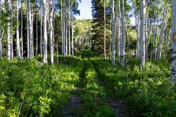 Diverse ecosystem: oak brush, aspen groves, blue spruce, and Engelmann spruce