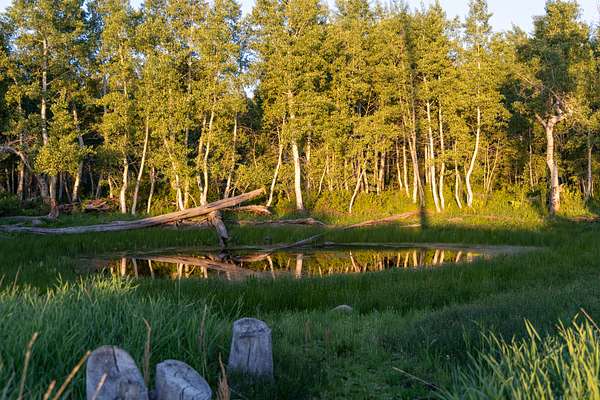 The land features a diverse ecosystem, from protein-rich oak brush to healthy aspen groves, as well as towering blue spruce and Douglas fir trees. Those who are savvy about the Colorado high country know that many aspen forests have been devastated by SADS--"sudden aspen death syndrome"--whereby aging aspen groves are full of dead trees and fallen logs. It's an unsightly mess that also poses a significant fire danger. However, the Buckhorn Lakes Mountain Ranch was logged about 30 years ago, and the new generation of aspen trees is vibrantly healthy. Additionally, the loggers bladed a network of roads throughout the ranch, now blanketed with grass, that give easy access to all corners of the ranch. It's simply a delight to hike, go 4-wheeling, ride horses, and hunt on this ranch with great access throughout the vast acreage. Anyone who can sit in a side-by-side UTV can enjoy this property. On the upper southeast corner of the ranch, the 4WD trail climbs up through groves of Douglas fir, mature aspens, and blue spruce to a lovely lake that is an ideal place to canoe, fish, and recreate.