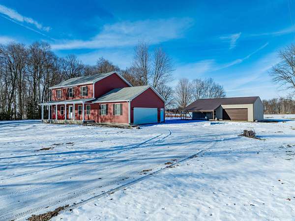 Don't miss this private country retreat sitting on 2 acres. Newly constructed 2 story home with almost 2000 square feet of living space. Interior features include 3 bedrooms, multi-use den, 2.5 bathrooms- double vanities in both upstairs bathrooms, 2 separate living spaces downstairs. Attached 2.5 car garage and conditioned crawlspace. Luxury vinyl plank, upgraded cabinetry with dovetail finishes and pull out drawers, hard surface countertops, tiled shower and walk in closet in the primary bedroom. Exterior features include 1470 square foot pole barn with 100amp electricity, covered front porch on house and pole barn. Propane tank, water softener and filter are leased. Transferable builder warranties in place. Kitchen appliances included.