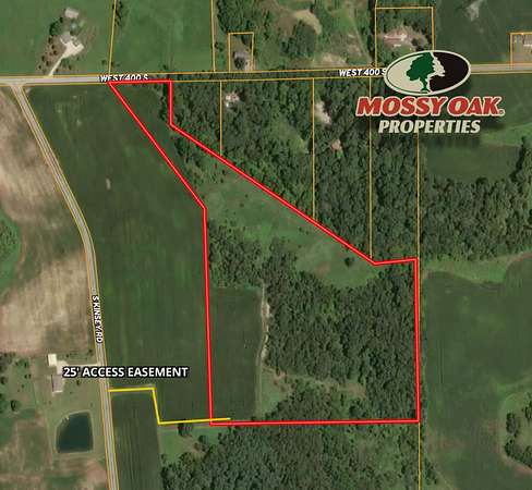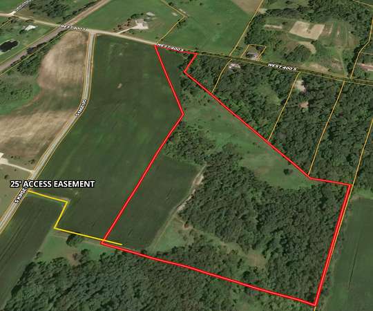 A drainage ditch provides a natural water source on the property, further enhancing wildlife habitat. Access from Kinsey Road is provided via a 25-foot-wide recorded easement, along with direct road frontage on W 400 S.