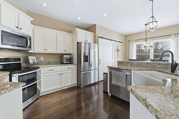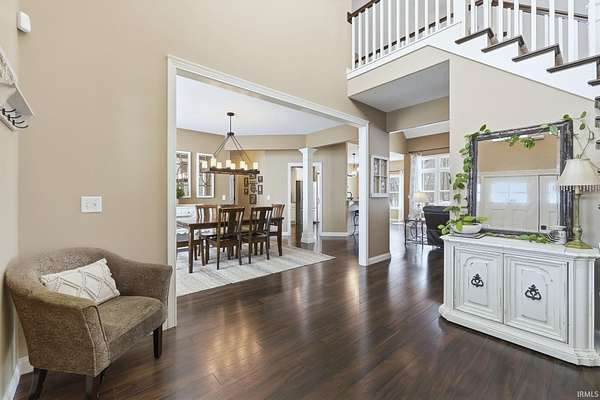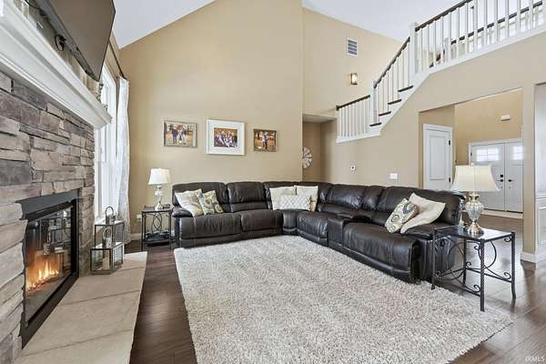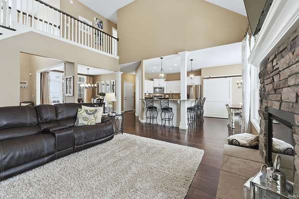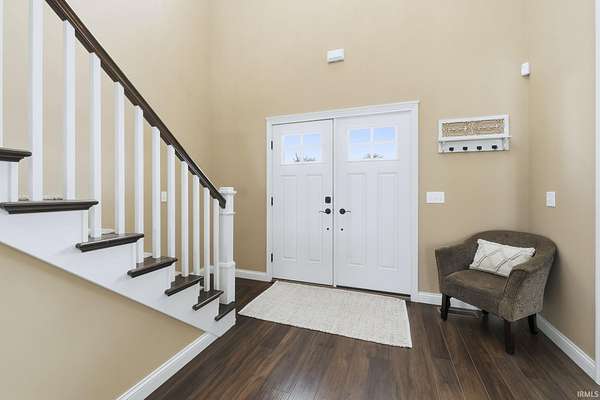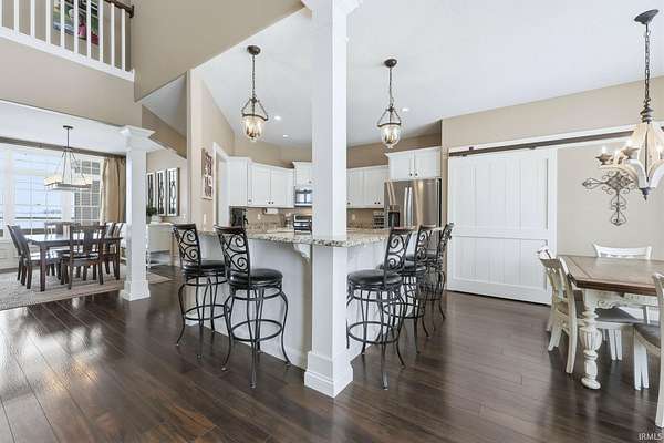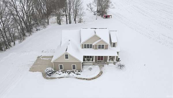Discover the ultimate country retreat with this stunning almost 5,000 sq. ft. custom home, perfectly positioned on 3 serene acres and surrounded by picturesque farm ground, offering unmatched privacy and showstopping sunrise and sunset views. Built in 2013, this residence blends timeless craftsmanship with modern comfort, featuring an expansive footprint, soaring ceilings, and rich hand-scraped style floors that set an elegant tone from the moment you step inside. Flooded with natural light on every level, the home's main floor boasts an inviting open-concept design. The gourmet kitchen is ideal for gatherings with its breakfast bar, dedicated breakfast area, and formal dining room. The main-level primary suite provides a peaceful escape with trey ceilings, double-sink vanity, soaking tub, stand-up shower, and a spacious walk-in closet. A secondary main-level suite sits conveniently near the laundry room, perfect for guests or multi-generational living. Upstairs, a catwalk overlooks both the grand foyer and great room, leading to an oversized bonus room, two generous bedrooms, and a Jack-and-Jill bathroom. The finished walkout basement expands your living and entertaining possibilities with a large family room, recreation area, exercise room, and a private den, an ideal blend of functionality and relaxation. If you've been searching for a luxurious country home with no close neighbors, wide-open views, and abundant space inside and out, this property delivers it all. An adjacent 23-acre parcel is also available for purchase, offering an extraordinary opportunity to create your dream estate.
