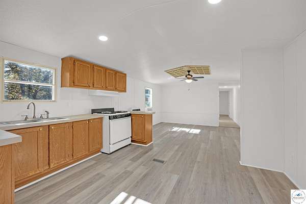 - Cabinets Wood, Gas Oven/Range, Smoke Detector, Vent Fan, Water Softener-Owned