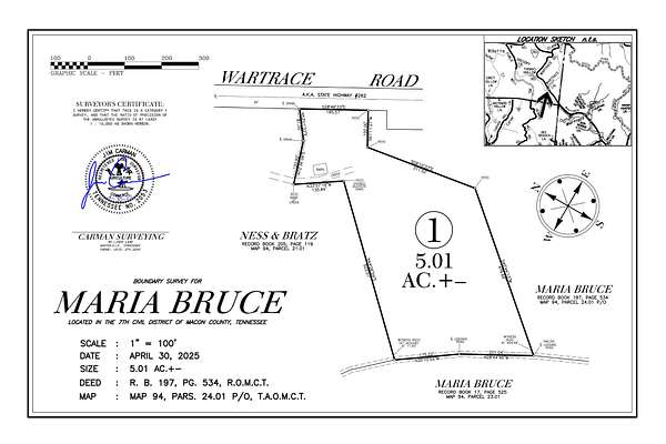 Est $449/mo5.01 surveyed acres near the Macon/ Jackson line- approx. 1.5+/- cleared acres near the road. This property was previously improved with a barn, shed, and old homestead. City water available at the road. Less than 6 miles to Wartrace beach, boat ramp, and recreation area, and 10 miles to Salt Lick Campground. This land is a great recreational tract or could make an awesome spot for quiet country living. More acreage is available for purchase totaling 18.32 acres. Taxes have not been assessed yet. This property is a portion of tax map 94 parcel 24.01.