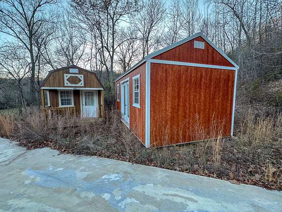 The land features trails, granting easy access to different parts of the 44 acres. Tucked back in the timber on a leveled hillside, the framework of an off-grid hunting cabin is ready for customization with a 50'x50' concrete pad, offering endless possibilities for additional structures or outdoor use. Two sheds--measuring 12'x20' and 10'x16'--provide ample storage space for equipment, tools, or supplies.