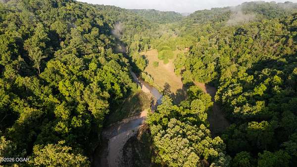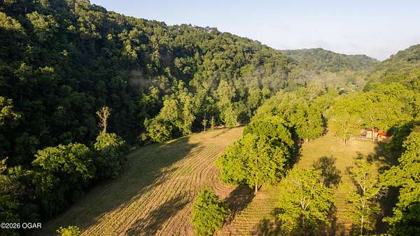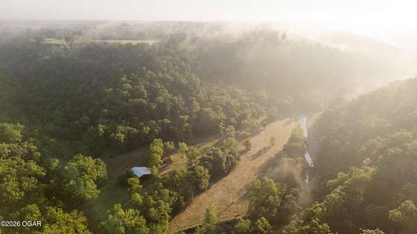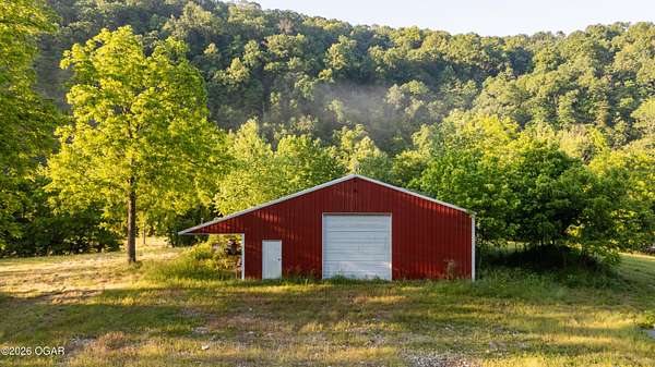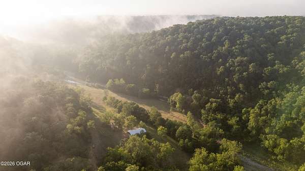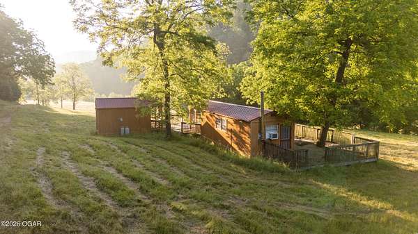 Located just west of Roaring River State Park and south of Cassville, Missouri is the large acre hunting farm you have been waiting for! This recreational oasis is 320 m/l (ask about additional acreage) acres of beautiful ridge tops, rolling hills, and a large stretch of bottom ground. Farm Road 1090 dead ends at the property gate allowing seclusion and the avoidance of high traffic and road hunters. As you enter the property you are met with a gorgeous clearing chalked full of young walnut trees. As you proceed, you are met with a wet weather creek that runs through the property and will flow pretty steady when it rains. Cross the creek crossing and continue the path to the first redneck blind overlooking a big portion of the bottom ground. Up the hill is the heart of the property. A fully furnished hunting cabin with sink, fridge, television, bunk beds, kitchen, bathroom, and a wrap around deck that allows for incredible views. Utilities include a well, septic, propane for heat, and solar for electric. Next to the cabins is a metal machine shed to store your tractor and implements. Just down the hill is redneck number two overlooking another great spot for a food plot. The property boasts several mature oaks that will drop plenty of food, but with ample water, cover, and extra food the potential of this farm is endless. If you prefer hunting timber, established trails work their way up on top of the ridges where two more food plots can be found. The property does have a gated entrance on the west side of the property that leads to an overgrown field and red neck blind number three. A small pond is also on the west side. During picture day, mature gobblers lit up the woods and a trail camera has already caught one tom, a bobcat, and several deer. This property truly is a must see and a turn-key hunting farm for anyone looking for their dream recreational tract. Only a short drive to Cassville and about 40 minutes to Bentonville, Arkansas.