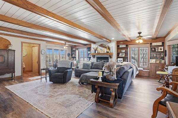 Dreaming of space without leaving town? This nearly 7-acre property delivers the best of both worlds room to roam, mature trees, fenced yard space, and even farm ground, all paired with a beautifully updated two-story home that truly checks every box. From the moment you pull in, you’ll appreciate the privacy, the setting, and the sense of possibility this property offers. Inside, the home blends timeless character with thoughtful updates. The original oak floors add warmth and charm, while vinyl plank flooring and quartz countertops bring modern style and durability. The kitchen shines with newer appliances and updated surfaces, and the four-seasons room offers the perfect place to enjoy every Iowa season in comfort. The spacious family room with a real wood burning fireplace might be your favorite room of the house! Efficiency meets comfort with geothermal heating and cooling (an all electric home) giving you long term savings and year around comfort. The main level features 1 bedroom and a half bath with laundry. Upstairs you'll find 3 more bedrooms including the primary suite (17x23) with it's own updated bathroom, plenty of storage and views of the backyard. Step outside and the magic continues with a patio, gazebo, wrap around front porch, koi pond & attached 3 car garage. This kind of property is rare, call today!