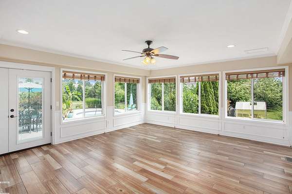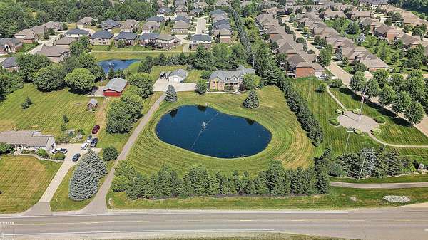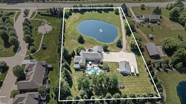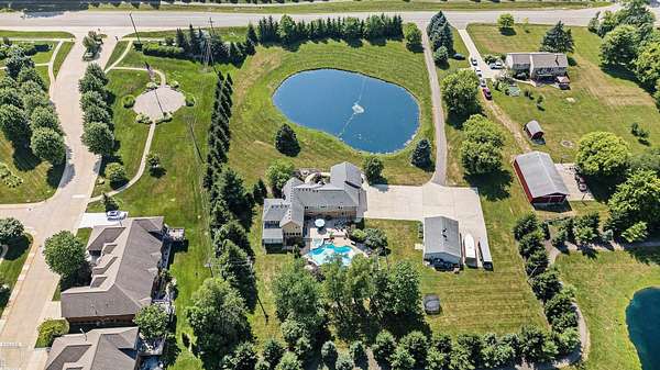 SIMPLY BEAUTIFUL, THIS IS A MUST SEE!! This tastefully & fully updated home on almost 3 acres with a stocked pond and 30x40 pole barn! Newer kitchen with Lafata cabinets, quartz countertops, coffee bar, 3 ovens, wine fridge, walk in pantry and stunning wood floors. Beautiful dining room overlooking the built in Gunite pool and outside oasis. French doors lead you to the recently added Three Seasons room with gas fireplace, remote control Florida blinds and spiral staircase to the huge walk in closet and lovely en-suite main bedroom. Down the hall you will find 3 more large bedrooms, 2 full bathrooms and the spacious laundry room. The basement would be great for a gym, rec room, playroom, media room to name a few. The attached heated garage has a 240v EV port. The spacious pole barn offers a cement floor and EV & RV Port and plenty of electricity. The home generator is ready to go if needed. All the amenities a homeowner could ask for!