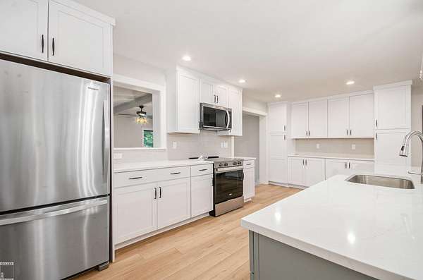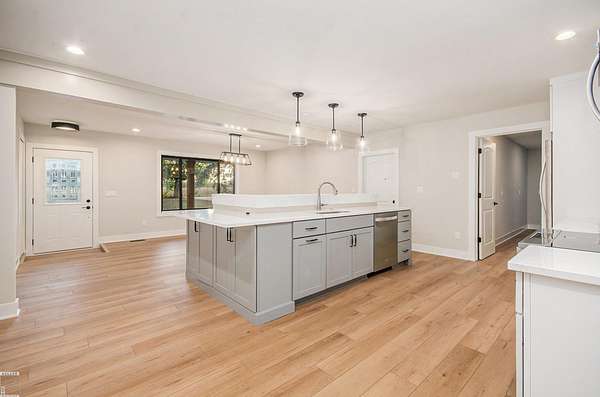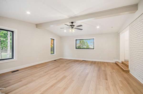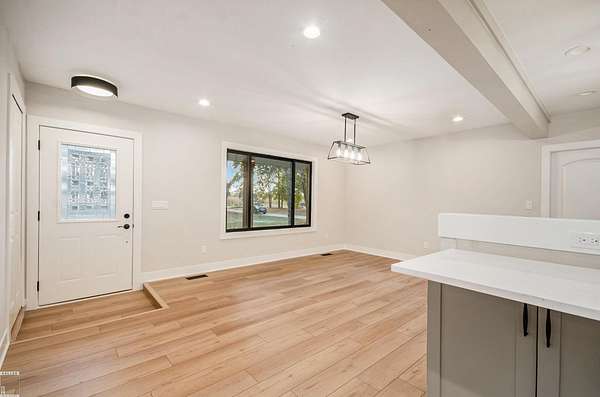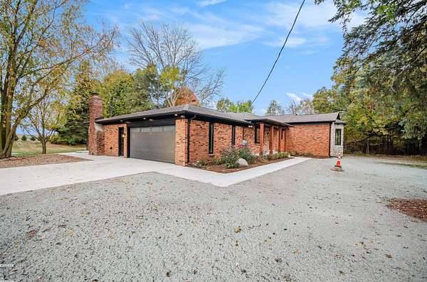 Est $4,277/moBeautifully situated and updated 2340 square foot brick ranch ON TWO ACRES and updated finished lower level with billiard room with wood floors, (pool table included); egress window and generous newly finished decor. High quality windows, Newer kitchen cabinets, quartz countertops and wood flooring. Renovated gorgeous bathrooms. Two Car attached garage. Newer Septic, City water at street. ADD A FABULOUS LARGE POLE BARN WITH WALK UP FLOORED ATTIC. Just place your furniture and move on with life. Possession at closing. All appliances as shown are included. No disappointments here.