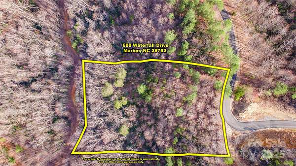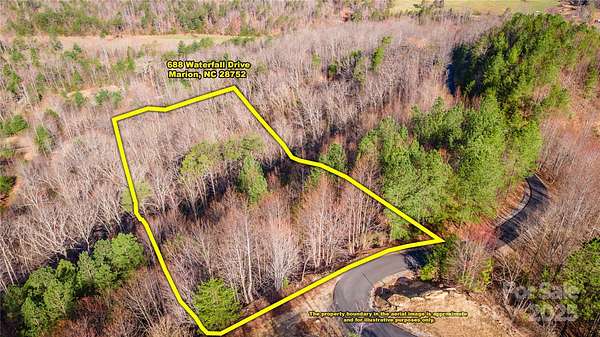 Drive east on I-240 E from Asheville. Merge onto I-40 E via the exit toward Statesville. Continue on I-40 E for approximately 30 miles. Take Exit 85 for US-221 N toward Marion/Burnsville. Turn left onto US-221 N and drive for about 1.5 miles. Turn right onto Hankins Road and continue for about 2.5 miles. Turn left onto Lake Tahoma Road and follow it for around 1 mile. Turn right onto Waterfall Drive (entrance to The Views at Woodland Hills). Follow Waterfall Drive to Lot 35, which will be on your left. There is a sign. It is helpful to download ReGrid App to see lot lines.
