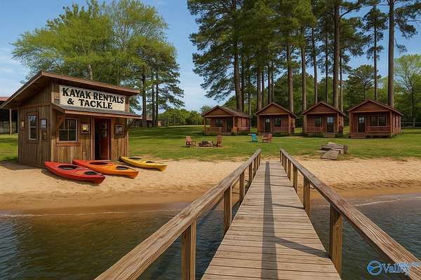 Build your lakefront vision steps from the action! This Lake Guntersville parcel comes with a private dock, electric boat lift, and boathouse--already in place for endless lake days. Even better, it's just a short walk from Fire on the Water, the popular boat-up restaurant and bar that draws crowds from across the lake. Guests at your future bed & breakfast, cabin retreat, or tiny-home getaway can enjoy lakeside relaxation and stroll over for dinner, drinks, and live music without ever starting the boat. With a newly reduced price, this property offers an unbeatable opportunity to create a one-of-a-kind hospitality destination.