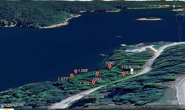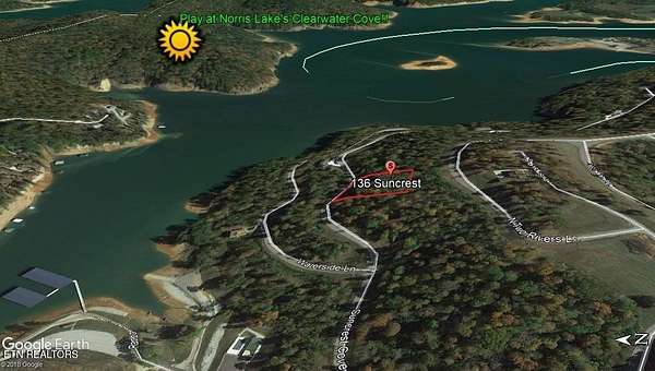 From I-75 take exit 134 towards LaFollette (25W/63E/SR-9). in 5.9 miles (after the high school) turn right onto Hunters Branch. in 1/2 mi turn right onto Demory Rd. In 4 miles when road splits (Y) stay right onto Granstboro at the boat storage. In 3 miles at next Y stay left onto Rainbow Dock Rd. In one mile stay right into Clearwater Cove. Stay on Laurel way for approx 2,000' to (R) on Sunset Cove then 1st (L) on Waterside Ln . Lot is on left.