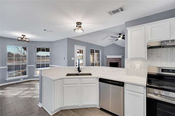 - Decorative Lighting, Double Vanity, Eat-In Kitchen, Open Floorplan, Pantry, Vaulted Ceiling(s), Walk-In Closet(s)