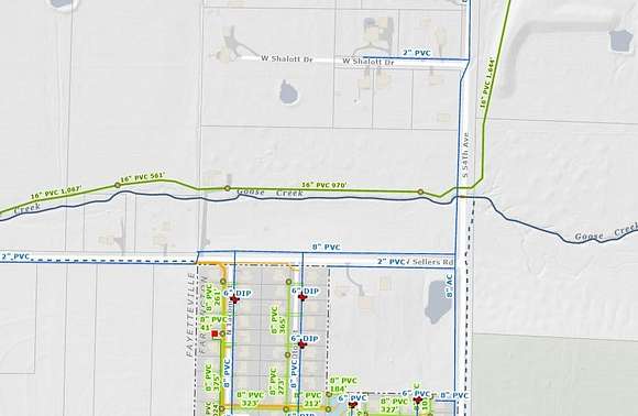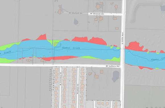 Prime 20-acre corner tract located on a paved intersection, offering excellent accessibility and development potential. The property features water and sewer at site (must confirm ability to tap), enhancing its readiness for construction currently zoned R-1. A flood plain runs through the center of the tract, but buildable areas are available on both the north and south sides, outside of the flood zone and there could be potentially more if built out of the flood area if allowed by City. These elevated sections present strong opportunities for targeted development, with flexibility for specific lot placements to maximize usable land. Ideal for investors or developers seeking a well-located parcel with utilities close and solid potential for a thoughtful, phased project or estate homes with larger lots.