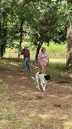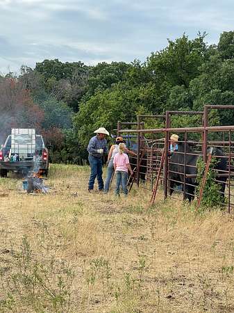 Mix of open pasture, shade from mature oaks, and partially cleared cedars