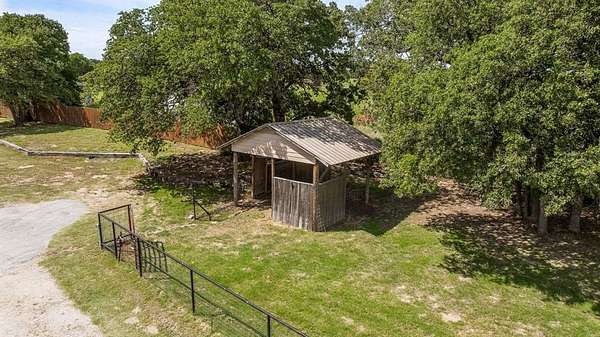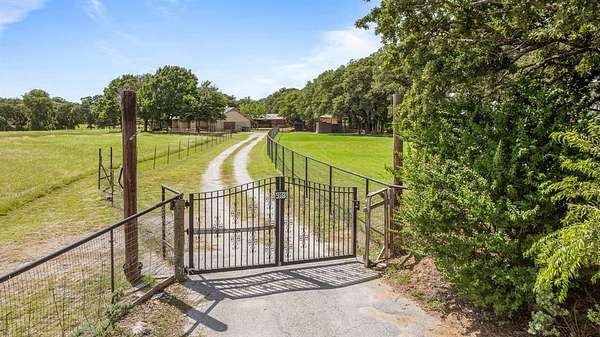 20 acre Ag exempt property offering exceptional amenities for rural living, recreation livestock and long term value just 35 minutes to the Fort Worth Stockyards and Coliseum. Enjoy country privacy with convenient access to Weatherford shopping, dining, medical and major travel routes while maintaining the peace of a true ranch setting. Two stocked ponds filled with large bass, catfish and bluegill are aerated by a picturesque windmill. Established bow and deer blinds with feeding stations support wildlife and seasonal hunting. Open pasture scattered trees and water features create usability and natural beauty. Multiple fenced pastures provide excellent grazing and livestock rotation ideal for horses cattle or agricultural use. Stables include rooms for tack and organized storage supporting daily operation. Water infrastructure includes a new well installed December 2024 Rain Soft water softener and filtration system reverse osmosis system tankless hot water heater and a secondary water heater two years old. Irrigation services the front yard maintaining curb appeal. The ranch style home features an updated kitchen completed in 2012 with stainless steel appliances and granite countertops. Soaring ceilings enhance the main living area and coordinating wood blinds add warmth. Spacious walk in closets provide storage throughout. The primary suite, remodeled in 2023, features quartz countertops, an open walk in shower and a separate soaking tub. The third secondary bedroom is oversized and flexible for guests or office use. Outdoor living includes a swimming pool covered patio and fire pit positioned for sunset views across the acreage. A second driveway approach from the main road provides convenient access for trailers equipment or future expansion. Ag exemption, water upgrades, recreational features, livestock readiness and prime Parker County location create a turnkey opportunity for buyers seeking privacy functionality and long term value.