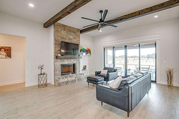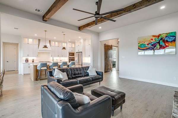 This 2-acre stunning property in Brock ISD is a blend of luxury, comfort, and modern living that you can call home. This meticulously maintained home totals 3,050 SF, and features 4 bedrooms, 3 bathrooms, an Office, a Flex Room and a 3-car garage with additional parking space. Spacious Open Concept with 10-foot ceilings which makes a perfect environment for both relaxation and entertainment. Luxury Vinyl and tile floors throughout. Enjoy the spacious Kitchen with quartz countertops, double oven and a walk-in pantry. Upgraded with a Water Softener already installed, Blinds in all the rooms, and an EV Charger. Step outside to find the whole property fenced in and cross fence. Furthermore, a beautiful 30X34 barn with two stalls, a tack room, washer bay, storage, and a feeding room. The Modern Barn has electricity, insulation, water heater and automatic water dispensers. You can use the barn for your animals, gardening, a shop, men cave... endless possibilities. The location of this property provides easy access to I20 making your daily commute hassle-free. Whether you are seeking tranquility or convenience, this property offers it all without compromising on style or comfort. Experience prime residential living, where every day feels like a getaway only at Santana Ridge, just 10 minutes drive to Weatherford and 30 minutes to Fort Worth.
