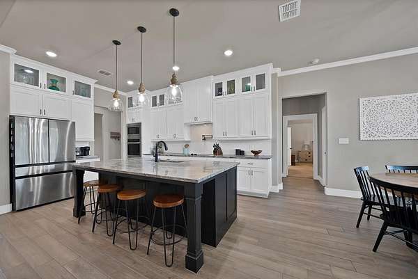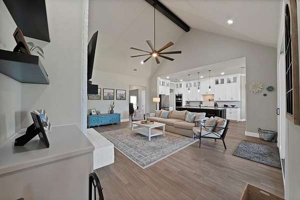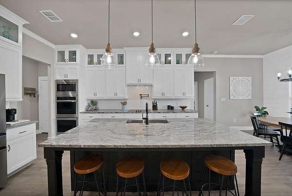 Built in 2022 and set on 2 fully fenced acres, this beautifully finished single-story home offers the perfect blend of modern comfort and country living just outside Weatherford.