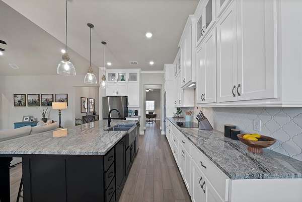 - Built-In Features, Cathedral Ceiling(s), Decorative Lighting, Kitchen Island, Open Floorplan, Pantry