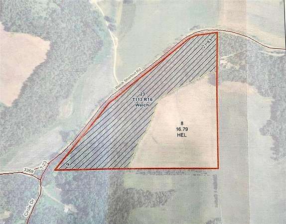 DOC#700347,9 PT OF NW1/4 SEC 23-113-16 COM AT SW COR, E ALNG S LINE 2573.57FT TO SE COR & POB; N ALNG E LINE 1539.75FT T O CL WELCH SHORT CUT RD, SWLY ALNG CL WELCH SHORT CUT RD & C