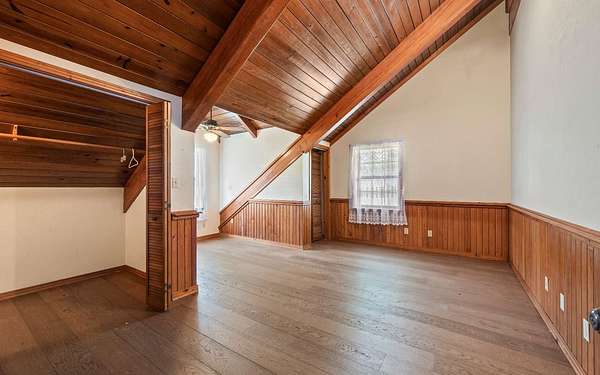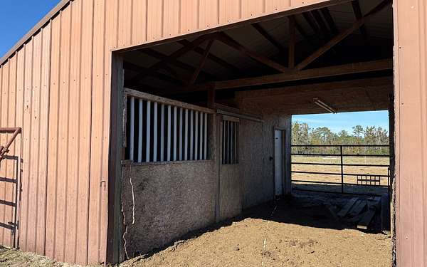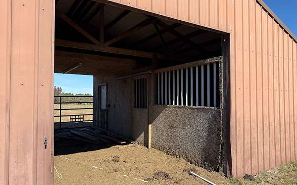 - Equestrian Community Feature, Farm Shelter, Fence, Irregular Lot Size, Natural Woods, Pasture, Shed, Stables, Underground Power, Wood Barn