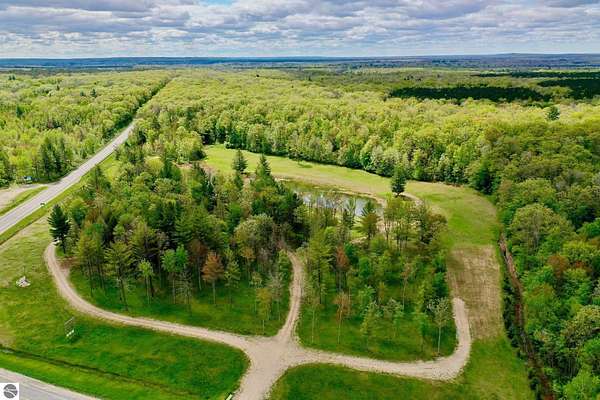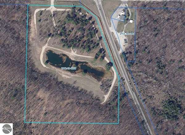 25 acres located on the highly visible and busy corner of M-55 and M-37 in Wellston, MI that adjoins thousands of acres of National Forest Land and adjacent to Trail 6 that is popular for snowmobiling and ORVs. A portion of the property is heavily wooded with gorgeous hilltop views that overlook a park-like setting with a private pond. There are endless development possibilities for this property. There has been a site plan partially completed for a 46-site RV Park that is available to view upon request, but again, that is just one possibility. Manistee is approximately 30 miles to the west, and Cadillac is 25 miles to the east and the beautiful ski hills and golf course of Caberfae are just a few miles up the road. Please make an appointment to view and aerial property lines are approximate. Property is zoned Commercial.
